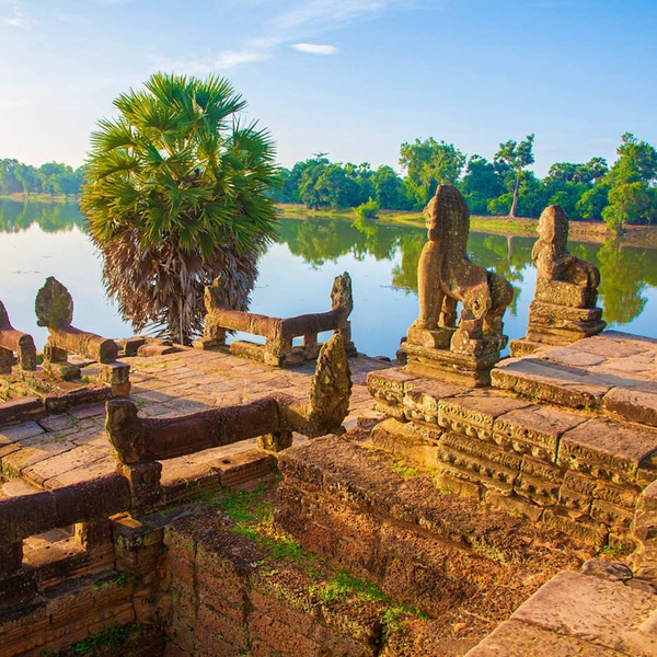 Vous continuerez votre excursion jusqu’à Srah Srang, l’ancien réservoir d’Angkor, où vous pourrez contempler la vue exceptionnelle et vous reposer avant d’aller déguster un délicieux déjeuner local.