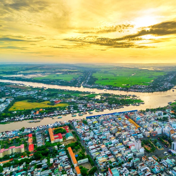 Après avoir récupéré vos vélos, votre circuit débutera sur une petite route menant vers la périphérie de la ville. Vous roulerez ensuite à travers la campagne, au milieu de nombreuses rizières. Plusieurs haltes sont prévues, afin de tenter de traverser un pont de singe, de comprendre le fonctionnement des champs de lotus ou simplement de regarder les buffles qui se reposent dans un petit canal. En chemin, vous apercevrez des rizières comptant parmi les plus grandes du delta du Mékong. À la fin de l'excursion, un arrêt dans un café local vous permettra de reprendre des forces.
