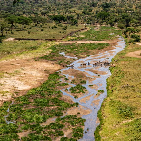 Le parc de Tarangire, s’étendant sur 2 600 km² à une altitude moyenne de 1 100–1 200 m, est un site authentique et préservé, moins fréquenté que d’autres réserves. Traversé du nord au sud par la rivière Tarangire, il offre un refuge vital pour la faune en saison sèche et se distingue par ses neuf types de végétation, dont les emblématiques baobabs.