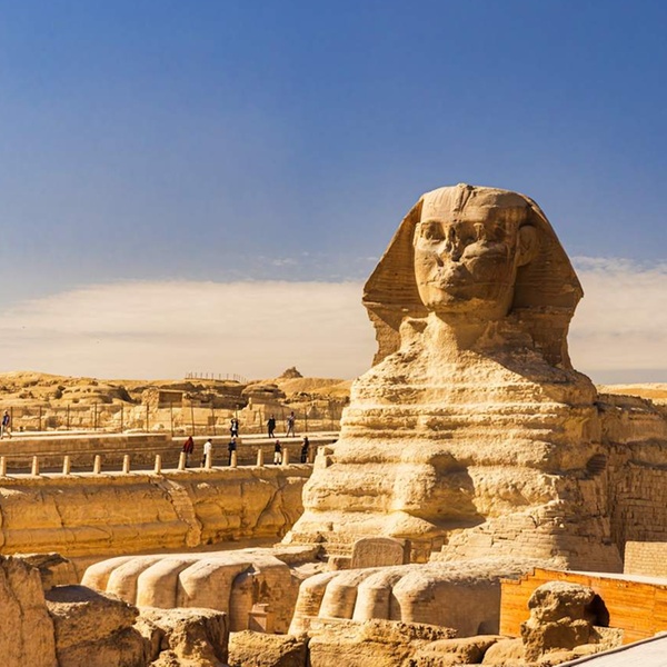 Déjeunez dans un restaurant local (non inclus) puis dirigez-vous vers les célèbres pyramides de Khéops, Khephren et Mykérinos. Ensuite, admirez le Grand Sphinx, une statue en calcaire de la créature mythique le Sphinx, avec la tête d'un pharaon et le corps d'un lion. Explorez le temple de la vallée, un complexe funéraire comprenant un temple funéraire et les pyramides de Khephren. Une fois que vous aurez terminé d'explorer la riche histoire et les sites emblématiques de l'Égypte, vous aurez du temps libre pour profiter à votre guise avant votre transfert vers votre hébergement au Caire ou à Gizeh.