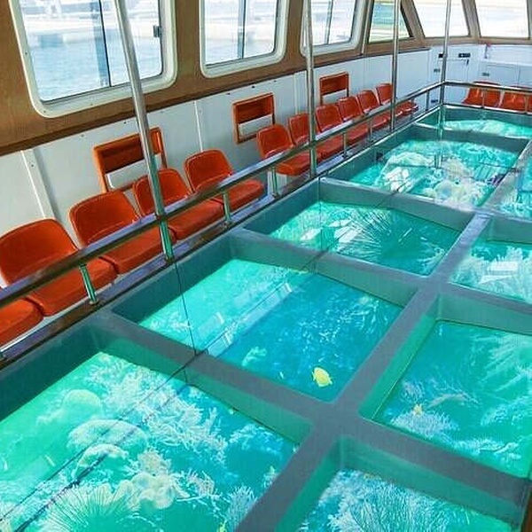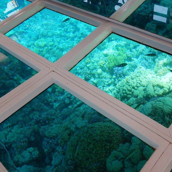 Profitez des incroyables paysages sous-marins sans être un plongeur professionnel ni même vous mouiller. Vous pouvez vous asseoir confortablement pendant que le bateau navigue sur la mer Rouge et ainsi explorer les trésors sous-marins, avec leurs magnifiques coraux et poissons. Vous serez émerveillé par la clarté de l'eau, la richesse des formations coralliennes et la variété des poissons tropicaux colorés que vous observerez à travers le fond transparent du bateau. L'excursion en bateau à fond de verre dure environ 45 minutes, plus un arrêt d'environ une demi-heure pour que les amateurs puissent faire de la plongée avec masque et tuba.