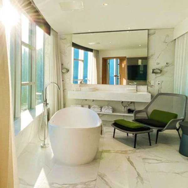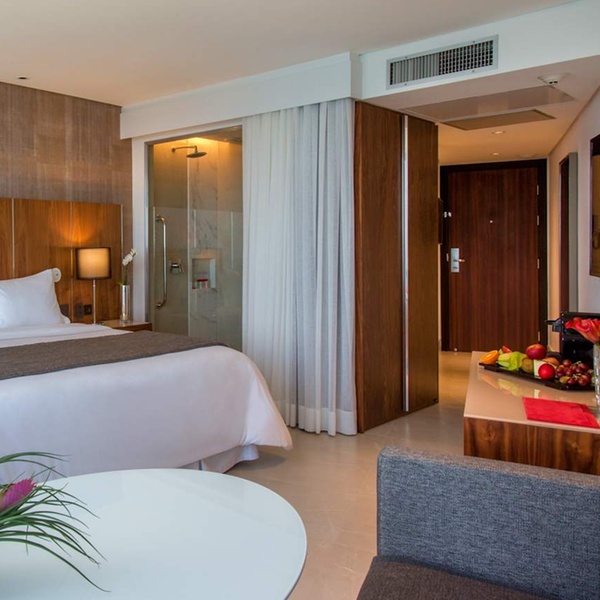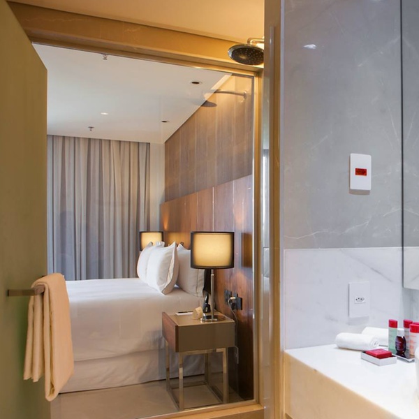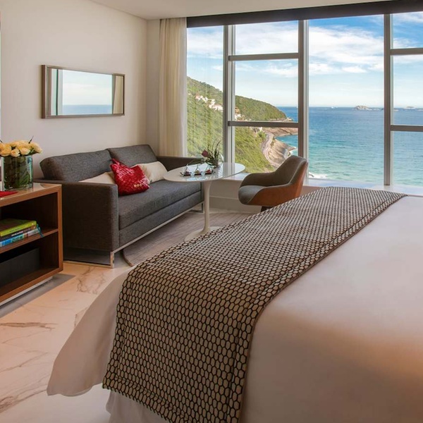 Dans cette chambre de 35 m², vous aurez une belle vue sur l'intérieur des terres et sur les montagnes qui s'élèvent au cœur de la cité carioca. En plus de son grand lit king size, la spacieuse et lumineuse pièce dispose d'un coin détente équipé d'un canapé, d'un fauteuil et d'une petite table.