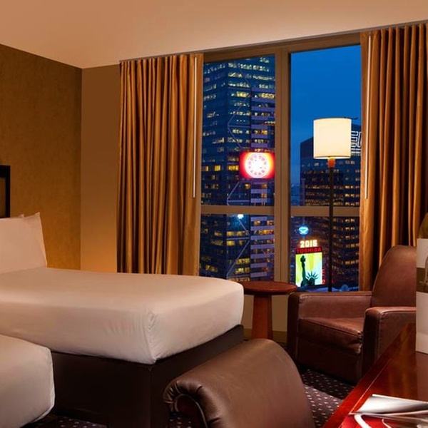 Poussez la porte des chambres Deluxe deux lits et laissez-vous bercer par les lumières de la skyline new-yorkaise. Généreusement proportionnés, ces cocons au design contemporain sont conçus pour quatre personnes au maximum. La solution privilégiée pour abriter les séjours en famille ou entre amis !