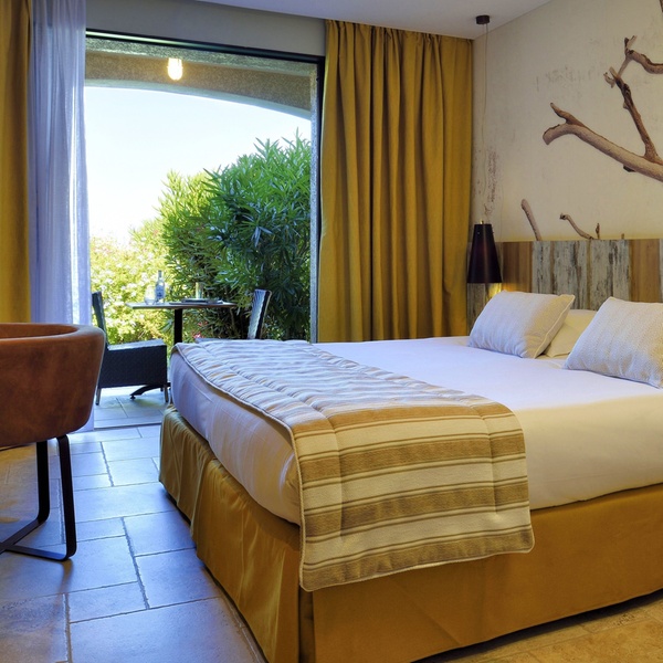 La décoration raffinée de cet hébergement s'intègre parfaitement dans le panorama naturel qui l'entoure. La literie douillette peut profiter à quatre personnes au maximum. La terrasse aménagée permet de poser son regard sur le jardin de l'hôtel ou sur la mer Méditerranée au loin.