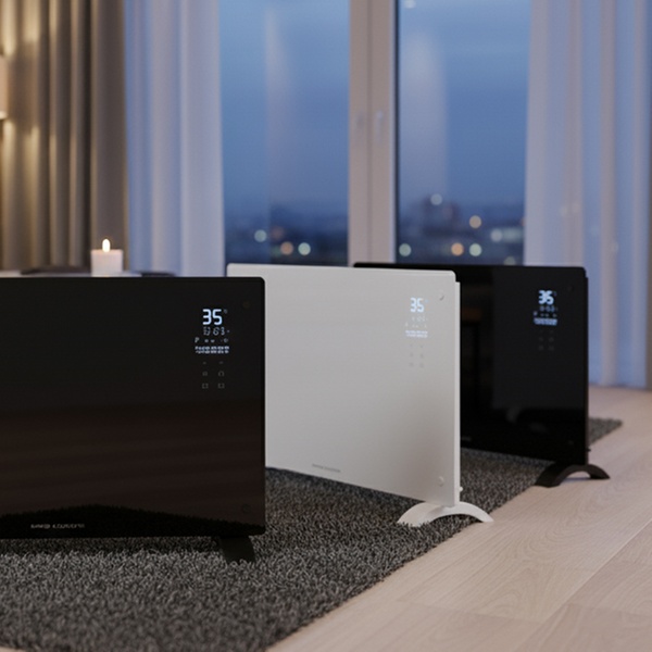 Chauffage rapide et silencieux avec façade en verre haut de gamme. Confort assuré ! Chauffage par convecteur.