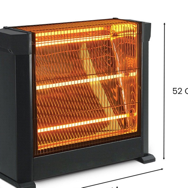 ⚠️ Safety Information – Chauffage infrarouge à quartz 1800 W. Utilisation appropriée : utilisez uniquement pour chauffer des espaces intérieurs jusqu'à 12 m². Ne couvrez pas le chauffage et ne bloquez pas les grilles d'aération. Tenez-le éloigné des rideaux, tissus, meubles ou matériaux inflammables. Sécurité électrique : branchez uniquement à des prises correctement mises à la terre. N'utilisez pas de rallonges ou d'adaptateurs non certifiés. Ne touchez pas l'appareil avec les mains mouillées et évitez de l'utiliser dans des environnements très humides. Protection personnelle Ne laissez pas le radiateur sans surveillance pendant son utilisation. Gardez-le hors de portée des enfants et des animaux domestiques. Ne déplacez pas le radiateur pendant son fonctionnement. Dispositifs de sécurité intégrés : arrêt automatique en cas de surchauffe ou de basculement. Toujours placer sur une surface stable et plane. Entretien : éteindre et débrancher avant le nettoyage. Nettoyer uniquement avec un chiffon sec ; ne pas utiliser d'eau ou de solvants. Ne pas tenter d'ouvrir ou de réparer le radiateur : contacter un personnel qualifié. Élimination : éliminer conformément à la réglementation locale en matière de déchets électroniques.