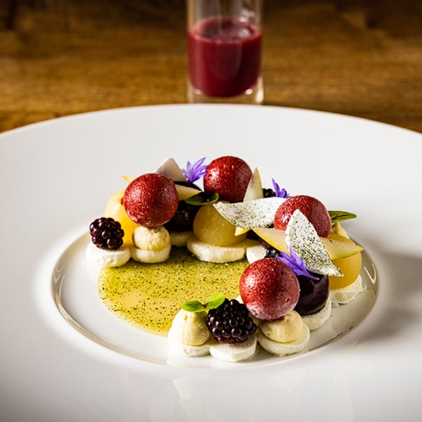 Son engagement est total : il utilise des produits de saison issus d'un réseau de producteurs partenaires situés à 50 km maximum du Relais. Cette cuisine généreuse et épurée promet d'émerveiller les yeux et le palais par ses saveurs justes, ses textures subtiles et son esthétique soignée.