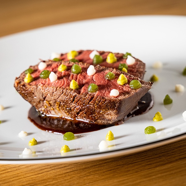 Le bœuf charolais français : son filet fumé au bois de hêtre, jus corsé au lichen de la région, petit-pois à la française revisité