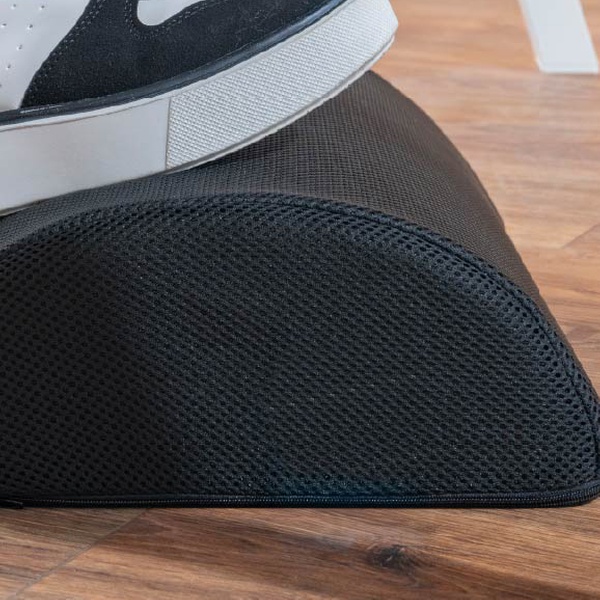 - design orthopédique incurvé : forme semi-cylindrique de 10 cm de hauteur qui respecte la courbure naturelle des jambes tout en favorisant la circulation