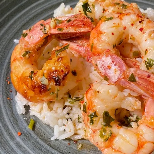 Gambas sauvages décortiquées flambées au pastis, persillade & légumes croquants