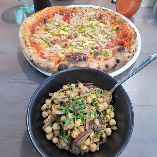 L'offre propose un moment de partage et de gourmandise autour d'un plat au choix (pizza, pâtes, viande ou poisson selon l'arrivage) ainsi qu'un fromage ou un dessert à choisir sur la carte du moment, pour chaque convive.
