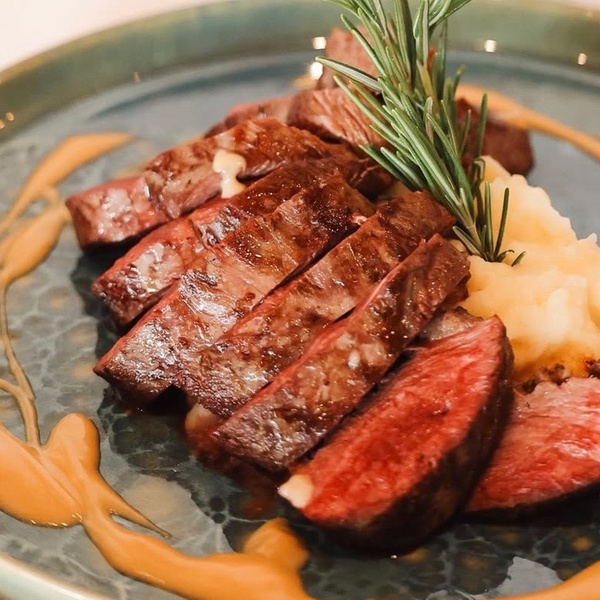 Pluma de Cochon cuisson basse Température 200gr, sauce Morilles, garniture écrasé de pommes de terres à la truffe