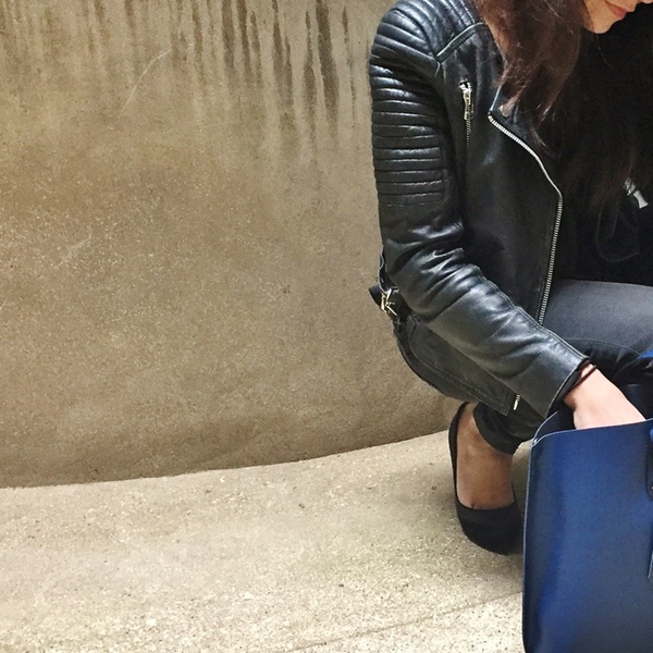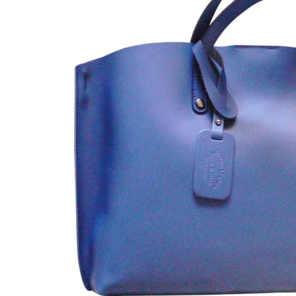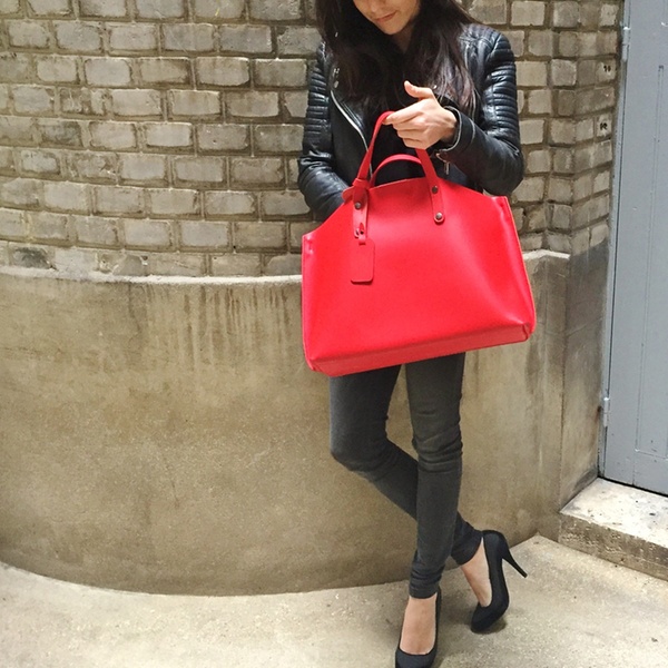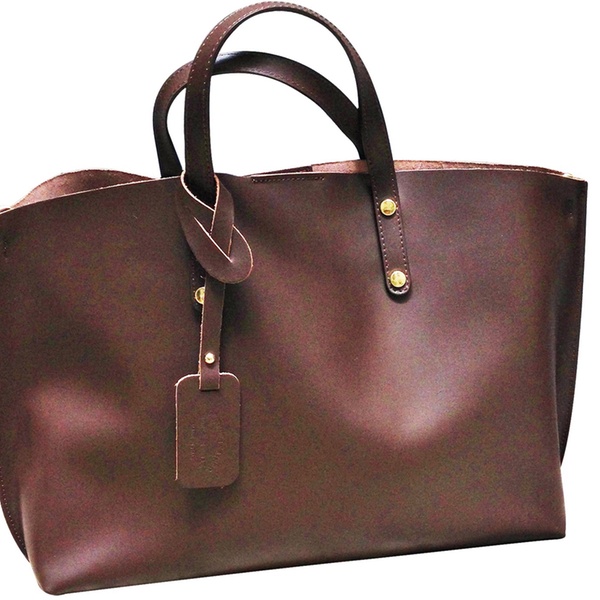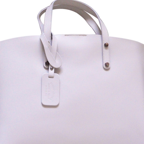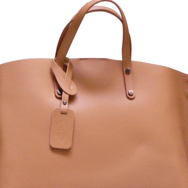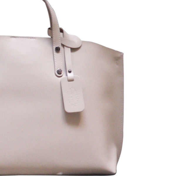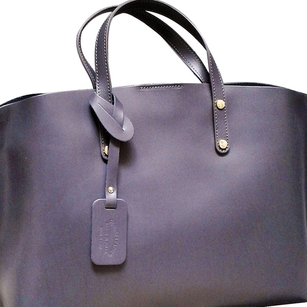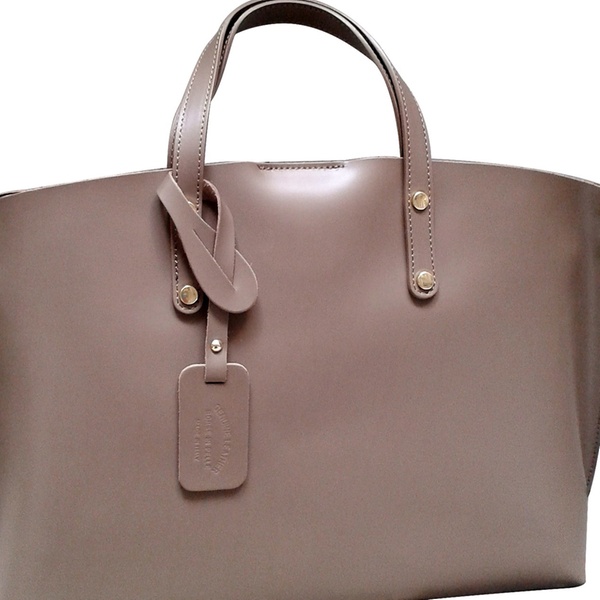 Ce sac cabas Marina en cuir glacé est accompagné d’une grande pochette amovible et a des dimensions permettant de ranger un ordinateur