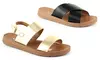 Convenables pour printemps et été, ces sandales sont dotées de 2 larges lanières et d’une semelle en caoutchouc. Disponibles en 2 modèles