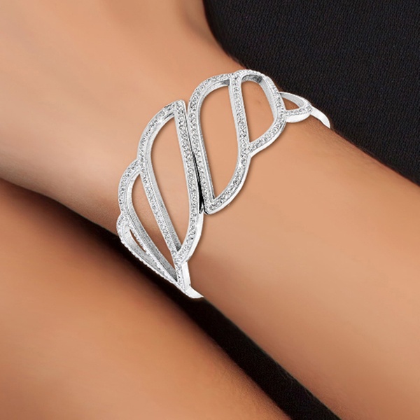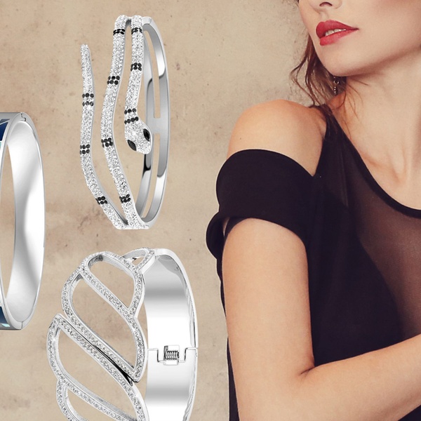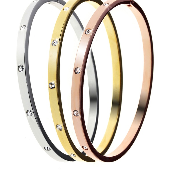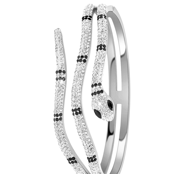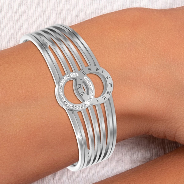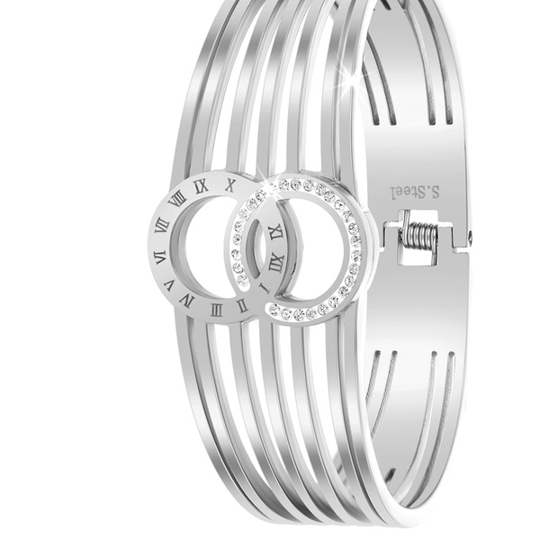 Bracelet en acier inoxydable, orné de cristaux scintillants, alliant élégance et durabilité pour embellir chaque tenue.