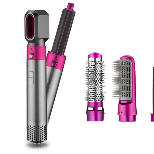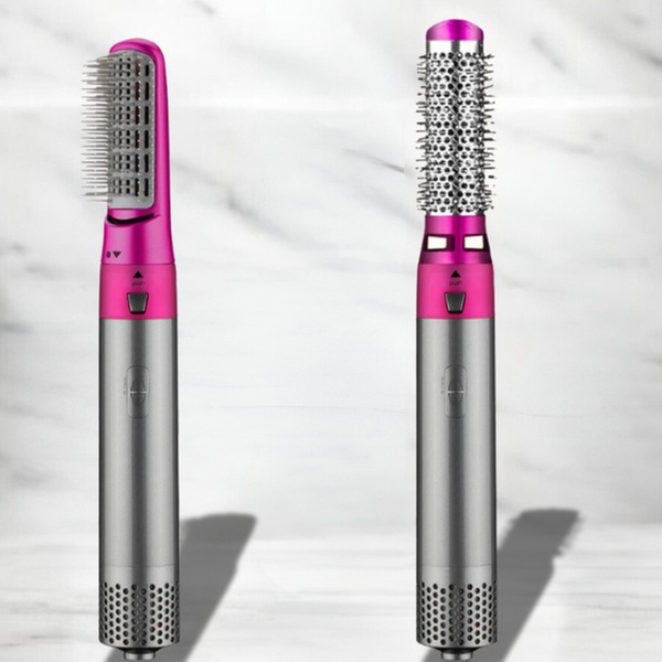 Ce multistyler 5 en 1 propose cinq embouts interchangeables, permettant de sécher, boucler, lisser et volumiser tous types de cheveux.