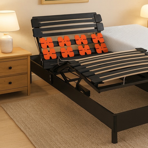 Literie électrique de relaxation, bi-technologie avec sommier à lattes et à plots, matelas en option, livraison offerte