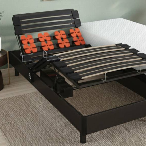 Ce sommier électrique se distingue par son système de lattes et plots, assurant un soutien personnalisé pour un confort sur mesure.