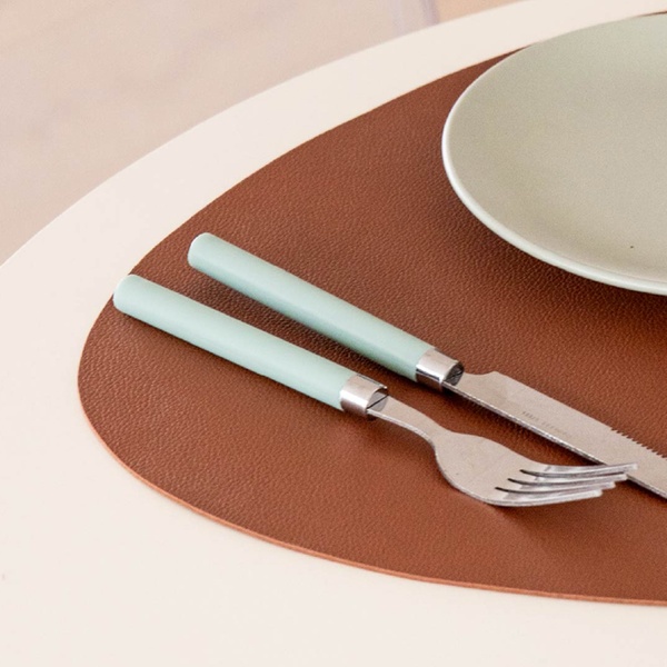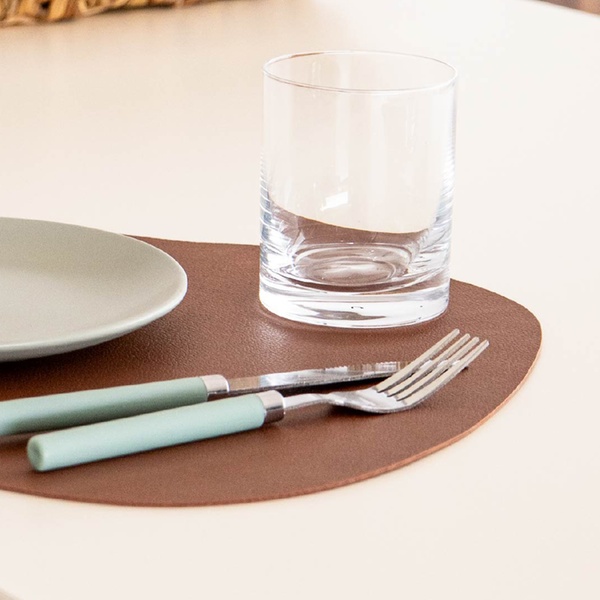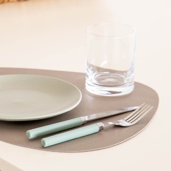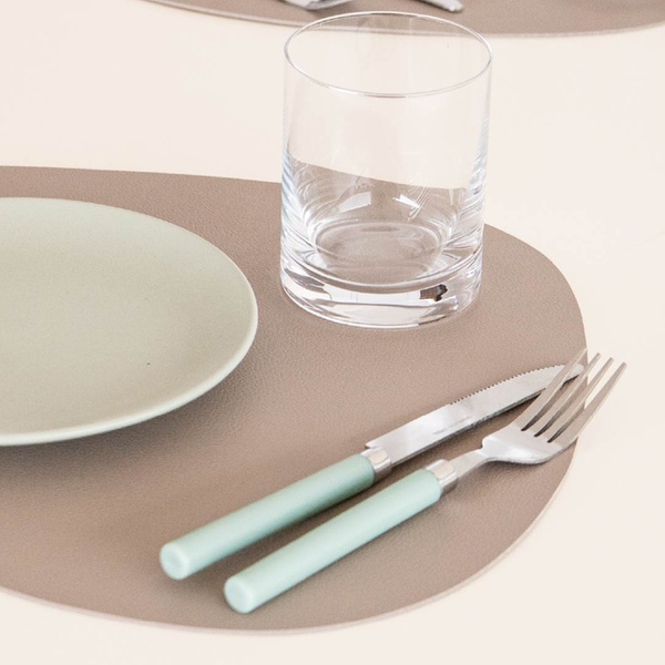 Des sets de table en similicuir couleur taupe, pour une touche d’élégance moderne à chaque repas.