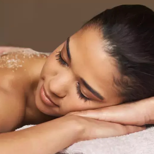 Massage cocooning à la cire tiède qui se transforme en huile soyeuse, nourrissant la peau et enveloppant le corps d’une chaleur réconfortante.
