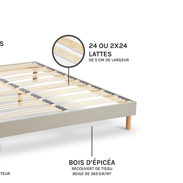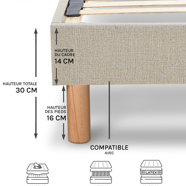 - Hauteur du sommier (pieds montés) : 30 cm
