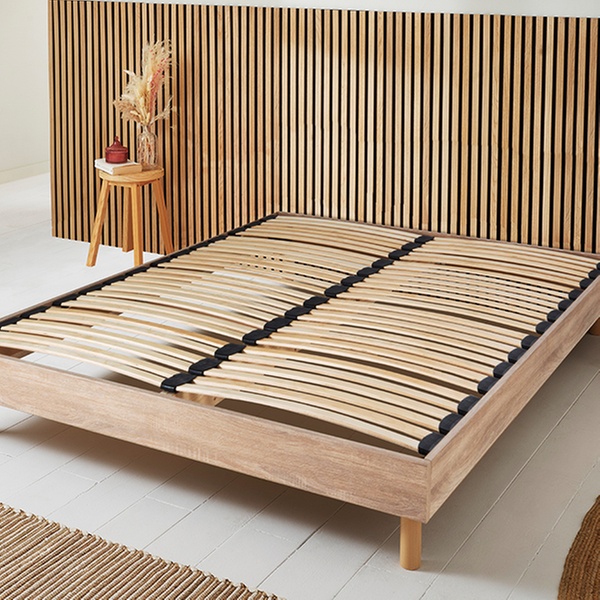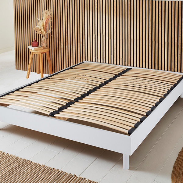 Cadre en bois : Assortez facilement ce sommier à lattes au reste de votre mobilier de chambre. Les pieds en bois sont également assortis au cadre.