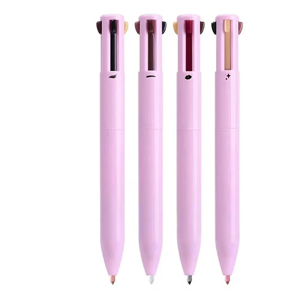 Le stylo "Penna" condense quatre essentiels du maquillage en un seul accessoire élégant et compact. Pensé pour les personnes actives, cet outil polyvalent réunit un liner noir, un crayon à lèvres rose mat, un illuminateur nacré et un stylo à sourcils dans un format stylo bille pratique.