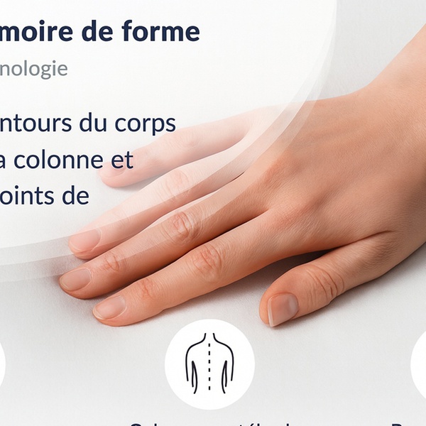 • Technologie : mousse à mémoire de forme viscoélastique très respirante 50 Kg/m³