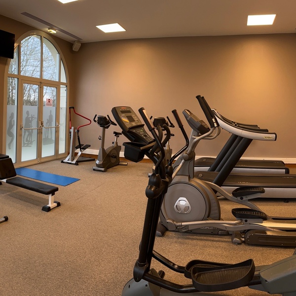 Un centre de remise en forme dans une demeure aux allures de château moderne, avec hammam, sauna, bain à remous, piscine et espace fitness