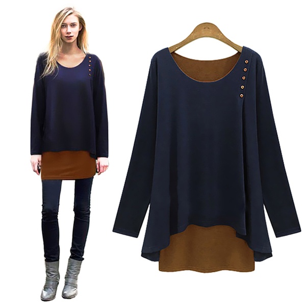 Ce top 2 en 1 en coton est disponible en bleu marine et gris