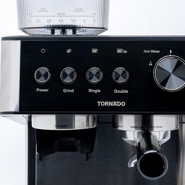 - Broyeur conique intégré offrant 30 réglages de mouture pour une belle extraction, quel que soit votre grain préféré.