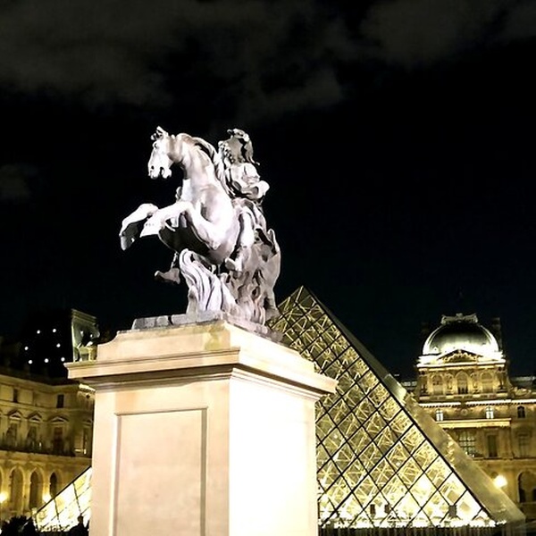 - Rendez-vous près de la statue de Louis XIV devant la pyramide du Musée du Louvre.