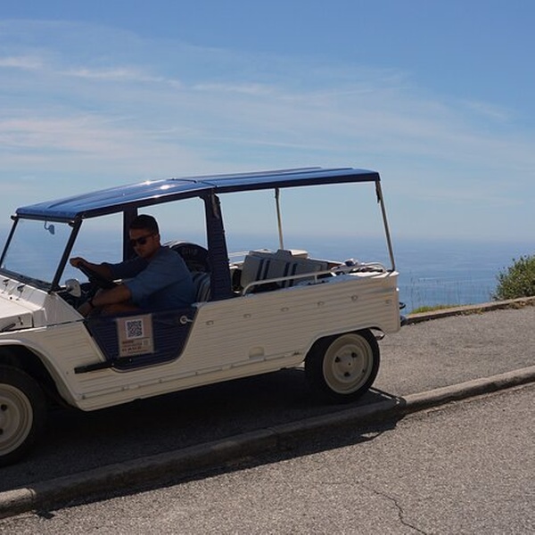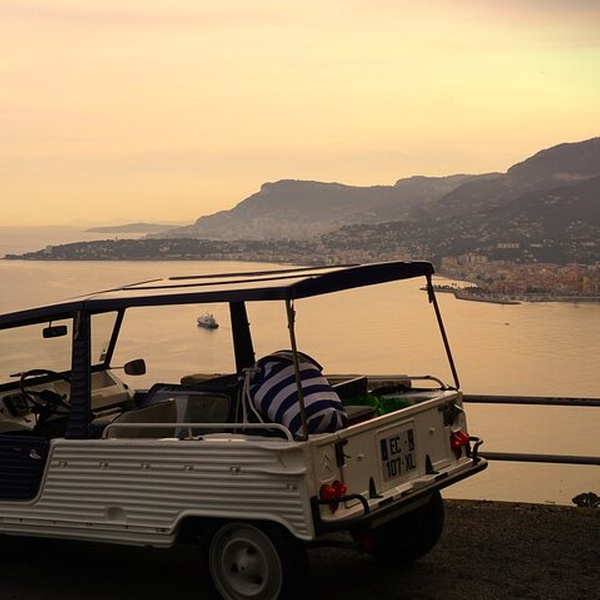 Découvrez la Côte d'Azur avec style à bord d'une Citroën Méhari de 1977. Au départ de Nice, cette expérience unique vous conduira le long de routes pittoresques telles que la Moyenne Corniche, avec des arrêts dans des sites historiques et pittoresques. Visite du village médiéval d'Èze, du Trophée d'Auguste à La Turbie et du quartier historique de Monaco, dont le célèbre circuit de Formule 1. En chemin, vous pourrez écouter des histoires locales et des anecdotes sur les films, le tout dans une atmosphère conviviale. Rendez votre voyage inoubliable avec des photos professionnelles dans les plus beaux endroits. - Explorer la Côte d'Azur à bord d'une Citroën Méhari emblématique - Visites d'Èze, de Monaco et d'autres sites historiques et panoramiques - Maximum 3 participants par tour, idéal pour les individus et les petits groupes. - Service photo professionnel inclus pour des souvenirs uniques