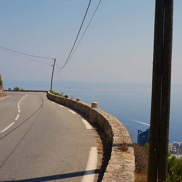 La Turbie - Nous traversons La Turbie sans nous arrêter dans la vieille ville, mais profitons d'une courte halte panoramique pour admirer la vue imprenable sur la baie de Monaco et le Trophée d'Auguste, un imposant monument romain. Cet arrêt nous permettra d'apprécier le panorama avant d'emprunter l'un des tronçons les plus spectaculaires de la Moyenne Corniche, une route panoramique offrant des vues extraordinaires sur la Côte d'Azur.