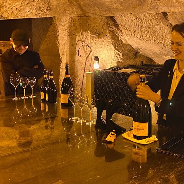 - Veuve Clicquot Visite guidée des caves avec dégustation de Champagne en raison de l'option choisie, voir Itinéraire