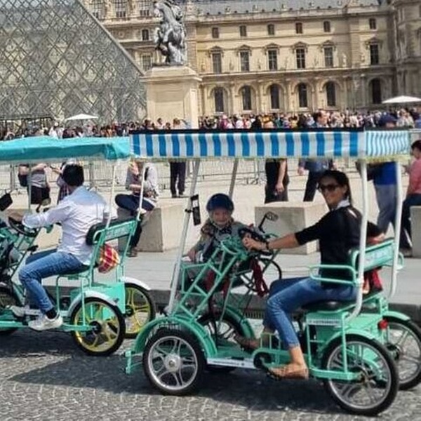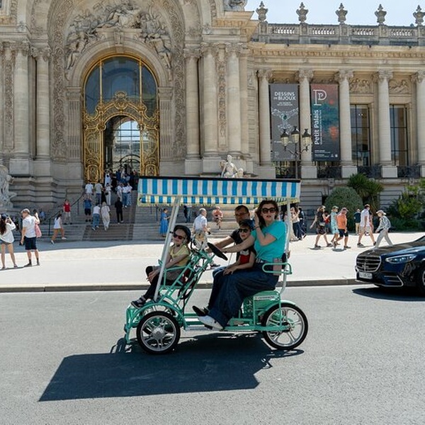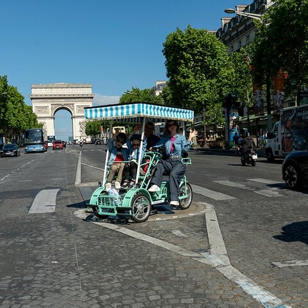 Passez une heure inoubliable ! C’est la solution idéale pour explorer Paris avec vos enfants, tout en respectant l’environnement. Découvrez ensemble des endroits magnifiques que vous ne pourriez pas voir en métro. Une aventure écoresponsable et pleine d’enthousiasme pour toute la famille ! Découvrez les sites emblématiques de Paris en seulement une heure ! Roulez en famille sur un vélo électrique confortable, idéal pour deux adultes et trois enfants. Admirez l'Arc de Triomphe, naviguez sur la Seine et admirez la vue sur la Tour Eiffel. Suivez l'itinéraire suggéré ou choisissez le vôtre, avec casques gratuits et guide multilingue. Une aventure rapide et inoubliable qui capture l'esprit de Paris.