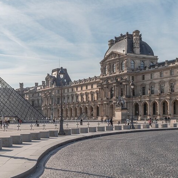 Arrêt photo à la Pyramide du Louvre et Cour Napoléon, l’un des monuments les plus célèbres de Paris.