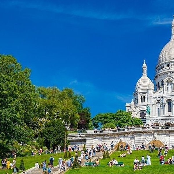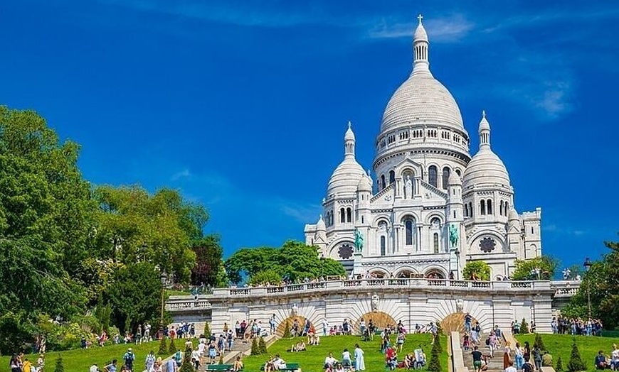 Explorez Montmartre et visitez la basilique du Sacré-Cœur, avec sa vue panoramique imprenable sur Paris et la charmante place du Tertre à proximité