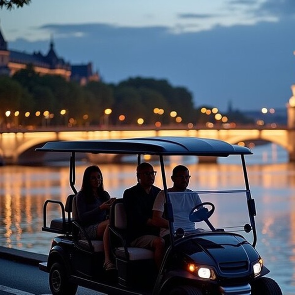 ✅ Visite nocturne privée de 2 heures de Paris dans une voiturette de golf électrique confortable - pas d'étrangers, juste votre groupe. • Admirez des monuments emblématiques magnifiquement illuminés, notamment la Tour Eiffel, l'Arc de Triomphe et le Louvre. • Plusieurs arrêts photos dans des lieux magiques comme le Trocadéro et le Pont Alexandre III. • Commentaire en direct de votre guide anglophone local — attrayant, amusant et personnalisé. • ️ Transfert à l’hôtel inclus dans certains quartiers parisiens, ou rendez-vous dans un lieu central et facile d’accès. • Parfait pour les couples, les familles et les petits groupes à la recherche d'une expérience romantique ou relaxante à Paris. • Évitez la circulation et les longues promenades — voyagez en toute sécurité et avec style à travers la Ville Lumière.