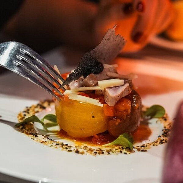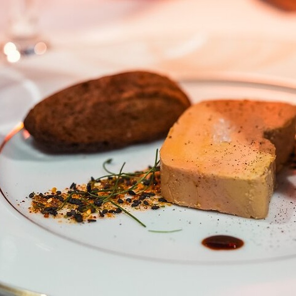 - DEUXIÈME SERVICE (21h15) : MENU ECHANTILLON*CHOIX D'ENTRÉE* Foie gras de canard mi-cuit au porto, compote de poires et figues, saupoudré de noisettes grillées / Saint-Jacques préparées deux fois, vinaigrette aux fruits de la passion, légumes racines à cuisson lente / Gaufre de sarrasin au saumon fumé écossais, crème DE thé délicatement fumée *CHOIX DE PLAT* Filet de bar poêlé, pommes de terre bébé, sauce au piment d'Espelette infusée au cacao / poitrine de canard façon Rossini, purée de céleri soyeux, légumes de saison torréfiés, jus de cassis riche / Filet de boeuf, champignons sauvages, purée de châtaignes et panais, sauce parfumée à la truffe ( + 10€) * FROMAGE* Assiette de fromages affinés (Facultatif + 10€) (Brie de Meaux, Comté, Sainte-Maure) *DESSERT* Dôme Samana : mousse chocolat, feuillantine croustillante, crème aux fruits de la passion / Pâtisserie d'inspiration St. Honoré / Délice vanille et pomme sur un biscuit joconde aux amandes