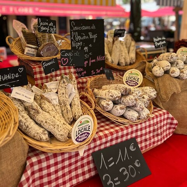 Visitez un paradis pour les gourmets au magnifique et charmant marché du Cours Saleya, le marché fermier quotidien de Nice proposant des produits frais et des fleurs.