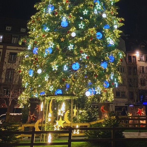 La Place Kléber est le lieu de rendez-vous, où se dresse le plus grand sapin de Noël de France ! Chaque année, cet arbre d'environ 70 ans et de 30 mètres de haut est transporté ici depuis le massif des Vosges, dès la fin du mois d'octobre. La Place Kléber, cœur battant de Strasbourg, est un lieu où se rencontrent l'histoire et le présent. Je vous parlerai de la statue du Général Kléber, ce héros de l'armée napoléonienne, dont le corps repose sous le socle de sa statue. À ses côtés, la majestueuse Aubette, un bâtiment qui a vu son destin transformé à plusieurs reprises. Pour pouvoir respecter un temps de visite total de 3 heures, nous ne flânerons pas dans le marché de la Place Kléber, mais vous aurez tout le loisir de le faire avant la rencontre bien sûr. Nous nous concentrerons sur d'autres marchés de Noël de la ville.