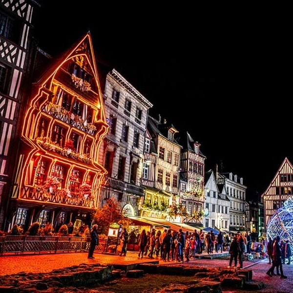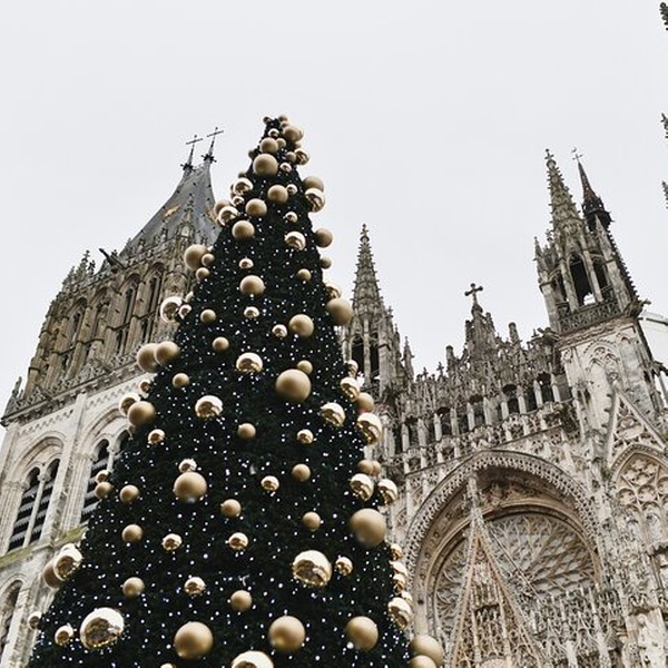 Visite de la cathédrale de Rouen. Promenez-vous le long du Gros-Horloge et admirez les maisons médiévales à colombages. Arrêt à l’église Sainte-Jeanne-d’Arc sur la place du Vieux-Marché, lieu historique de l’exécution de Jeanne d’Arc Explorez l'atmosphère de Noël de la vieille ville.