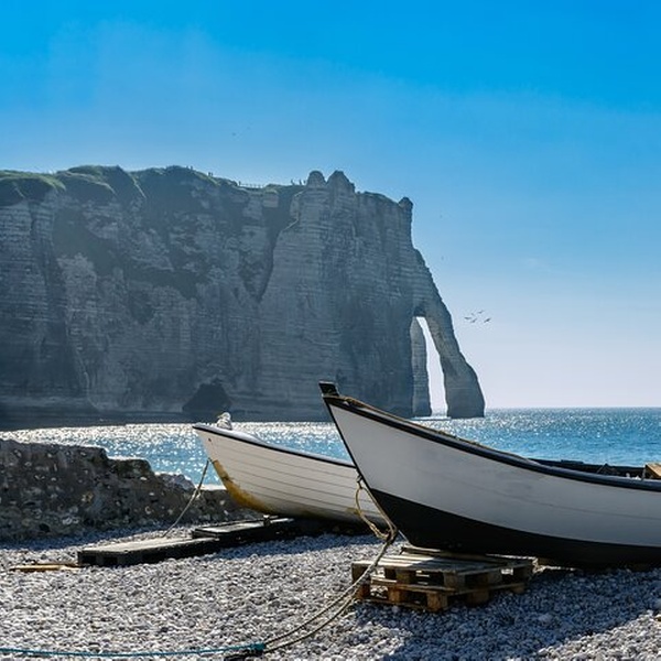 Après Rouen, continuez vers la spectaculaire côte normande et le joyau balnéaire d'Étretat. Promenez-vous le long de la plage de galets, respirez l’air pur de la mer et admirez les arches naturelles et les falaises sculptées par le vent et les vagues, dont l’emblématique « Aiguille » (L’Aiguille). Votre Guide mènera une promenade panoramique vers des points de vue panoramiques tels que la Porte d’Aval et la Chapelle Notre-Dame DE la Garde, offrant des possibilités de photos inoubliables. Profitez de votre temps libre pour déjeuner dans une brasserie locale, goûtez au célèbre cidre ou aux crêpes de Normandie ou détendez-vous simplement en bord de mer.