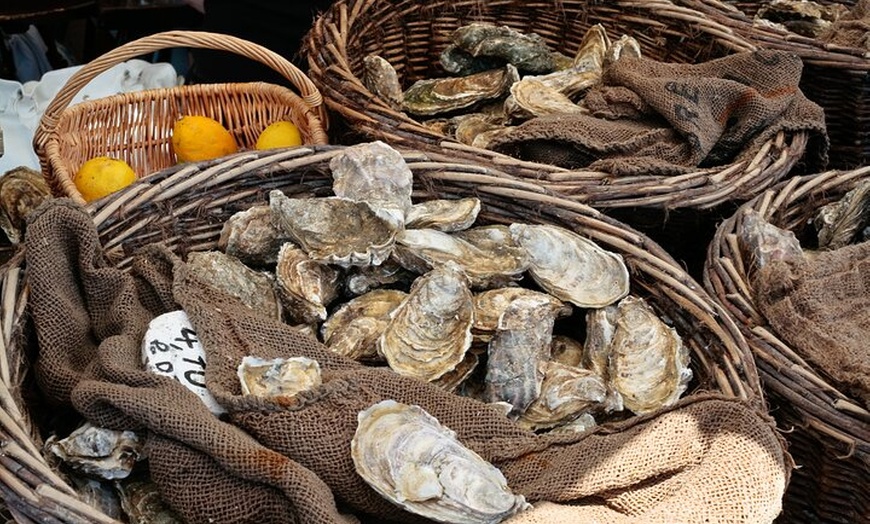 Arrêt pittoresque dans la ville côtière de Cancale, célèbre pour ses huîtres. Profitez d'une dégustation d'huîtres directement auprès d'un producteur local en bord de mer, avec le temps de vous détendre et de profiter de la vue sur la côte.