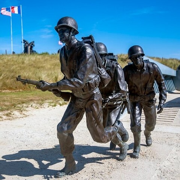 Le cimetière et le mémorial américain de Normandie Cimetière américaine de Colleville-sur-Mer) est un cimetière et mémorial de la Seconde Guerre mondiale situé à Colleville-sur-Mer, en Normandie, en France, qui rend hommage aux troupes américaines mortes en Europe pendant la Seconde Guerre mondiale. Il est situé sur le site de l'ancien cimetière temporaire du champ de bataille de Saint Laurent, couvre 172,5 acres et contient 9 388 tombes. Un monument commémoratif dans le cimetière comprend des cartes et des détails sur le débarquement de Normandie et les opérations militaires qui ont suivi. Au centre du mémorial se trouve Spirit of American Youth Rising from the Waves, une statue en bronze. Le cimetière comprend également deux mâts de drapeaux où, à différentes heures, les gens se réunissent pour regarder les drapeaux américains être baissés et pliés.