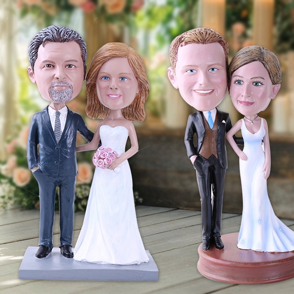 - Bobblehead entièrement personnalisée pour deux personnes (têtes et corps customisés de la tête aux pieds, selon les photos et descriptions fournies).