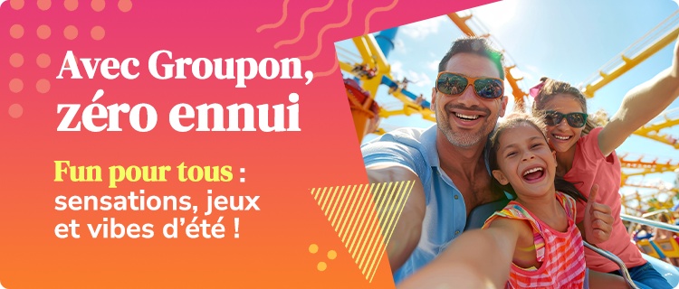 L’été, c’est le moment de s’amuser, de vivre des aventures et de créer des souvenirs inoubliables ! Avec les Inspirations ensoleillées de Groupon, profitez des meilleures offres sur les parcs de loisirs, les activités en plein air pour les enfants, les plaisirs gourmands et les événements en direct. Que vous cherchiez des sensations fortes, un moment de détente ou une sortie en famille, nous avons de l’inspiration pour chacun.