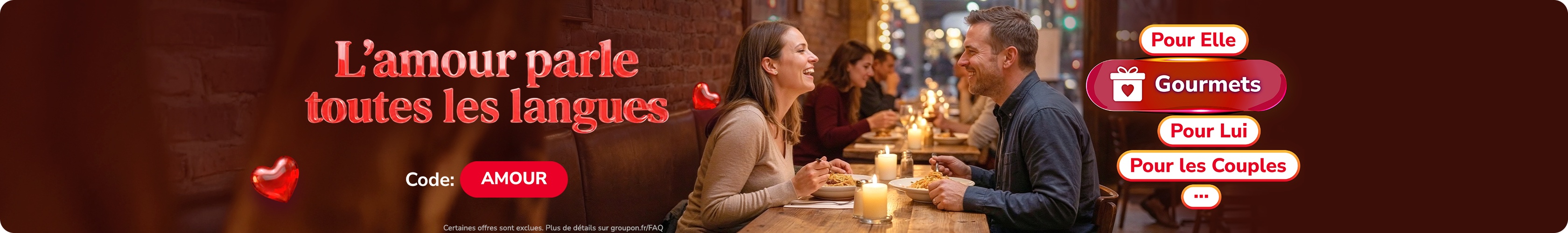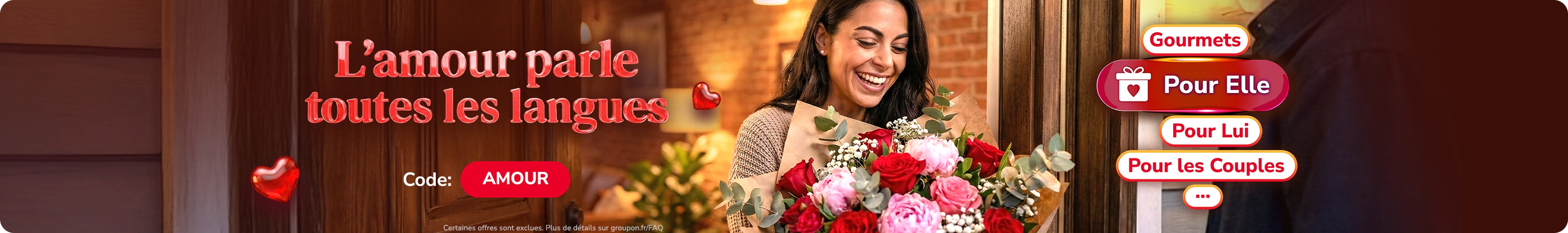 Amour romantique, amitié ou moment pour soi : célébrez toutes les formes d’amour avec Groupon.